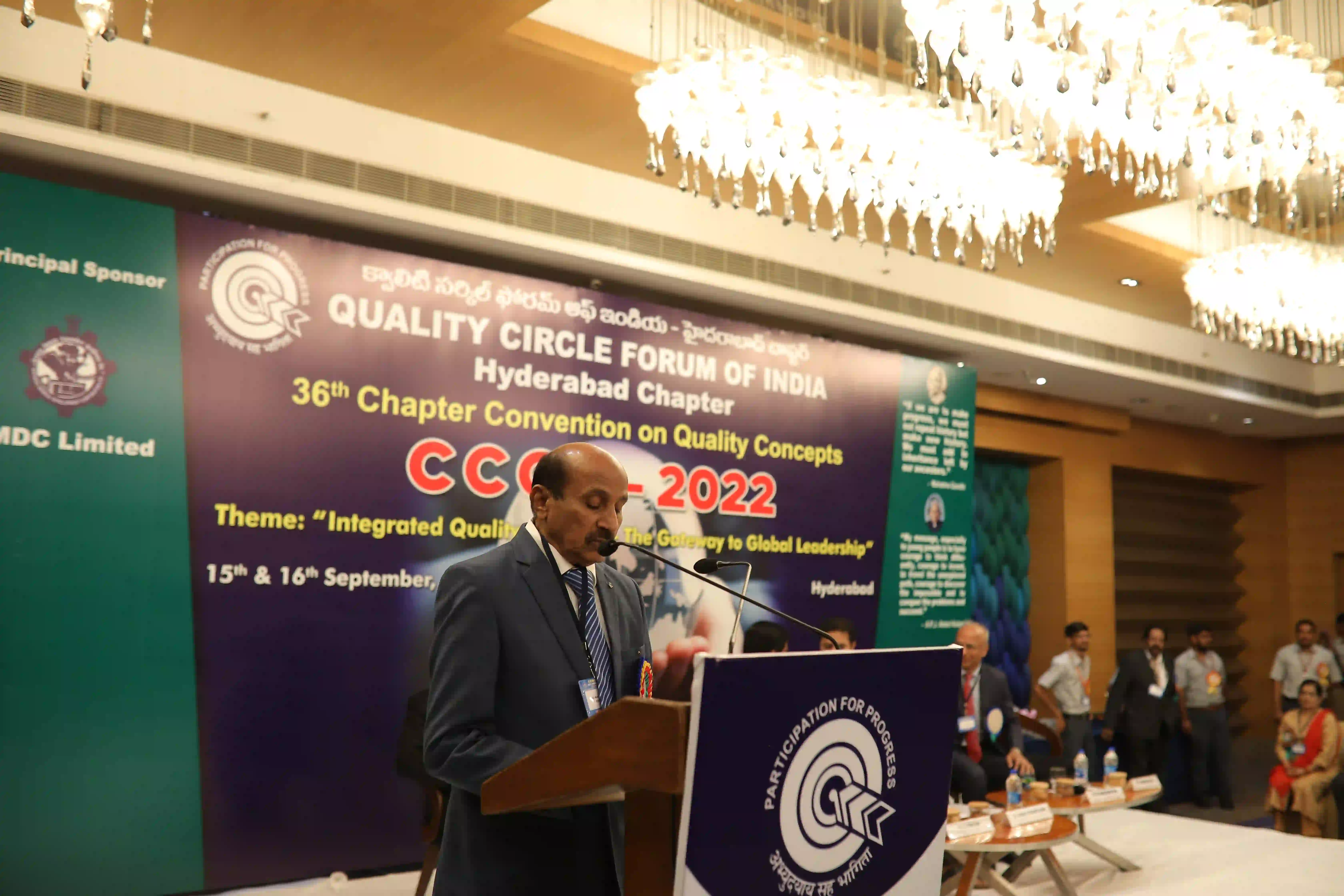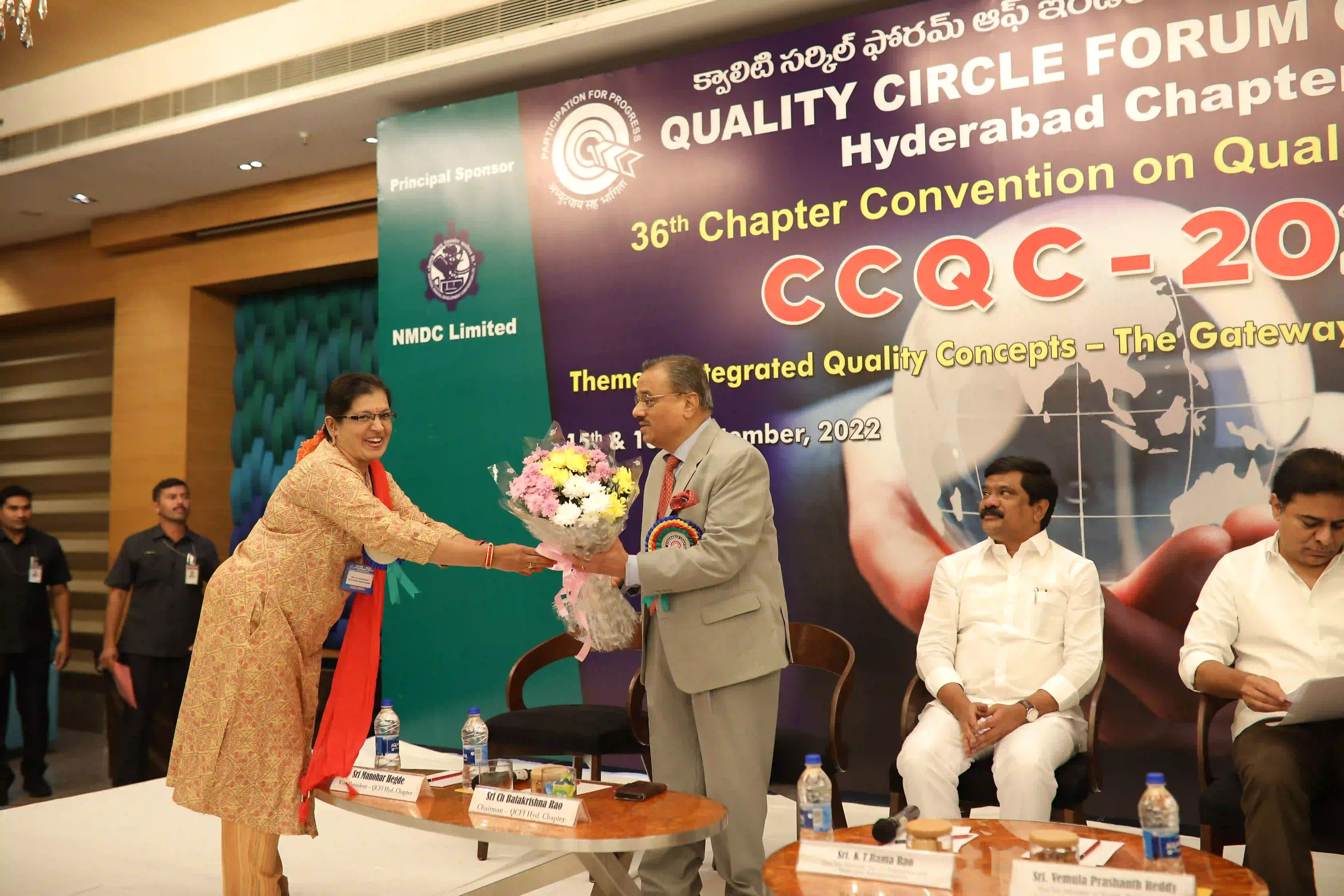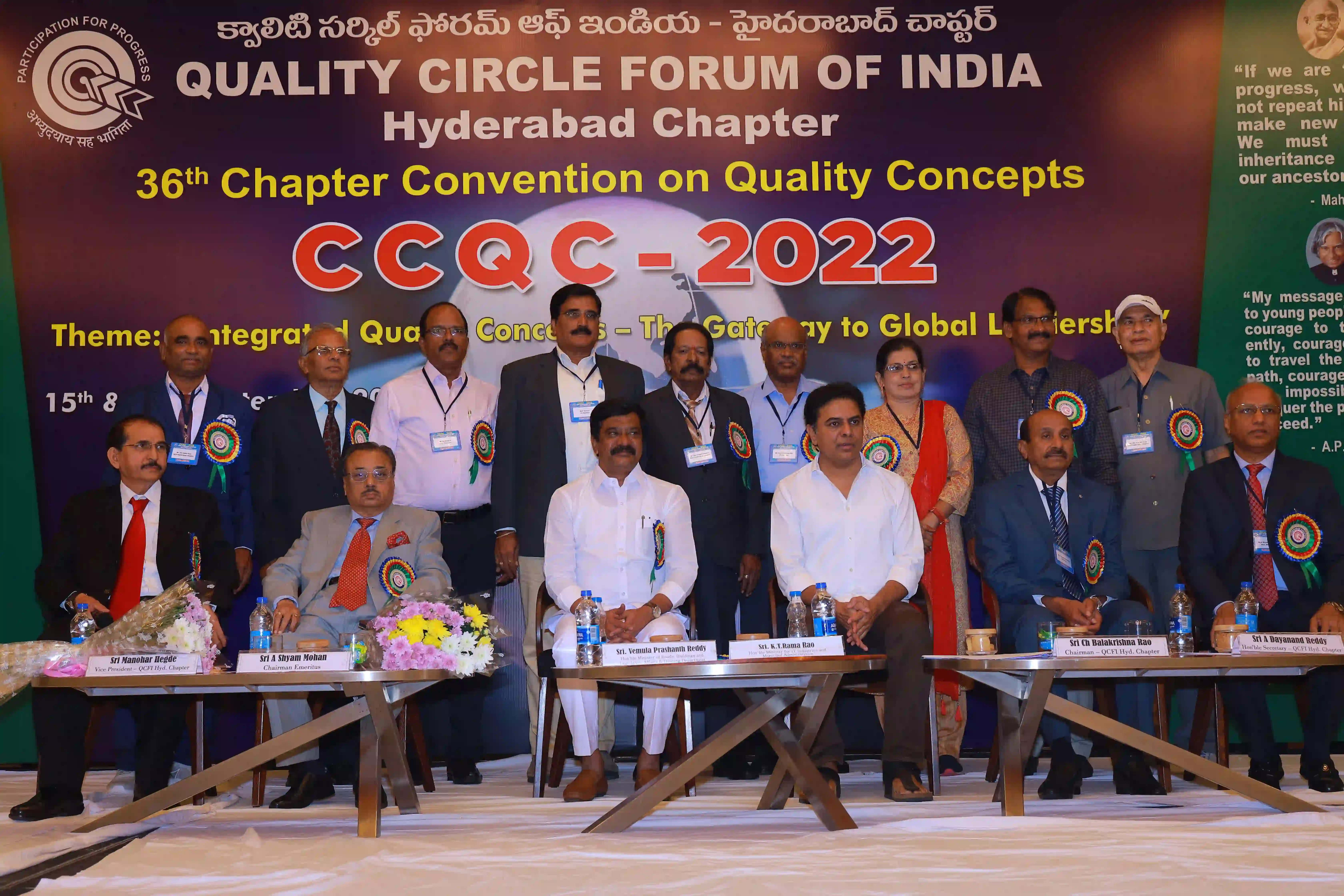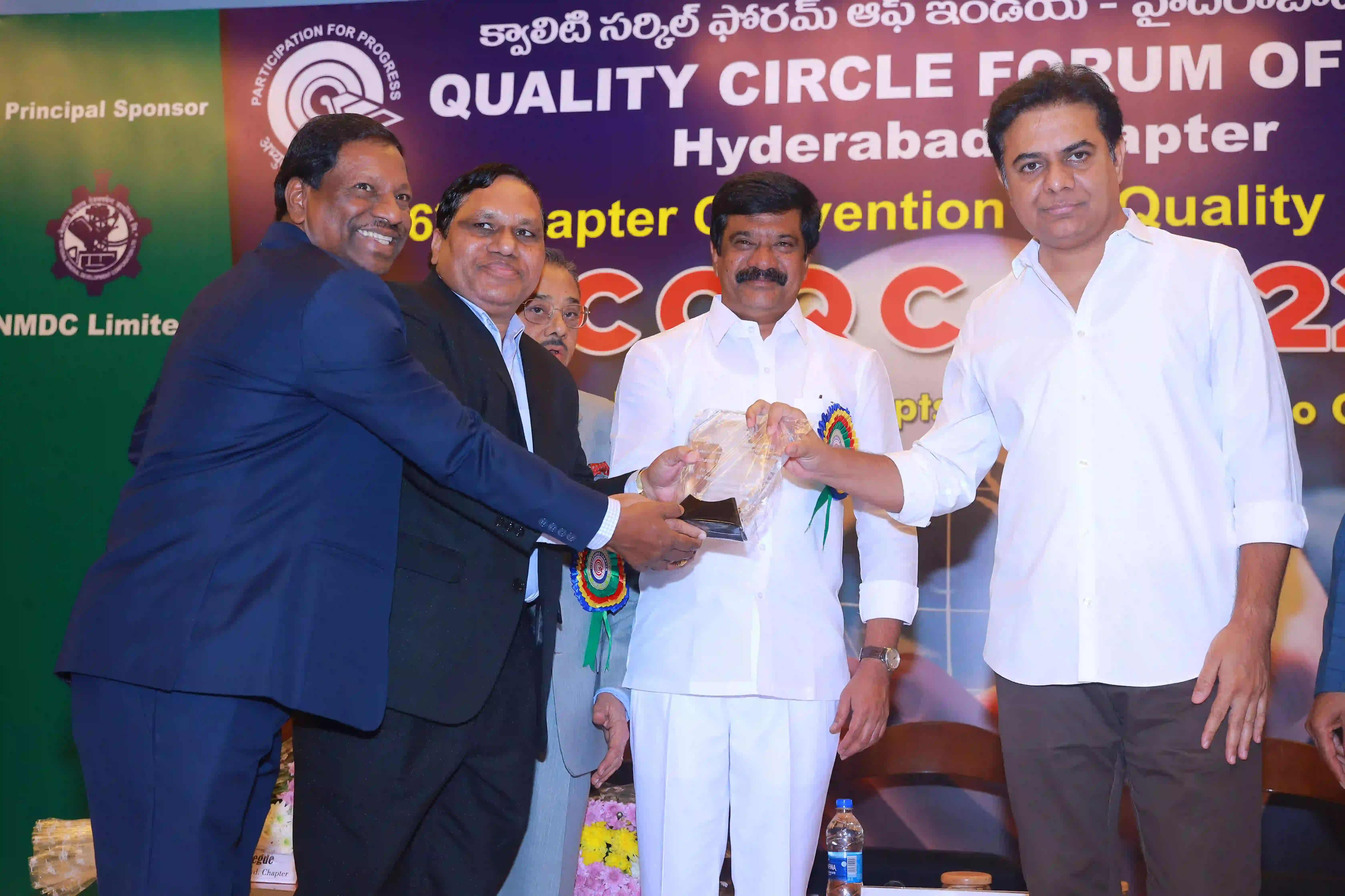 26th Hyderabad chapter convention on QCs was conducted on 12th Expotel, Hyderabad. 93 QC teams participated in the convention with a 600 QC team members. The teams have presented their continuous improvement projects from various aspects of manufacturing and maintenance wings leading to productivity enhancement and quality improvements of organizations.The convention was inaugurated by Hon’ble Union minister for Surface Transport & Highways Sri Sarvey Satyanarayana, who has stressed on the topic of human resource development for achieving better results in the organizations and gave examples from his personal life. Later, Sri Neerabh Kumar Prasad, Commissioner, HMDA outlined on the quality of deliveries to citizens on various services. Participants have found exihilarated experiences from the convention and were happy on aspects of self and mutual learnings.