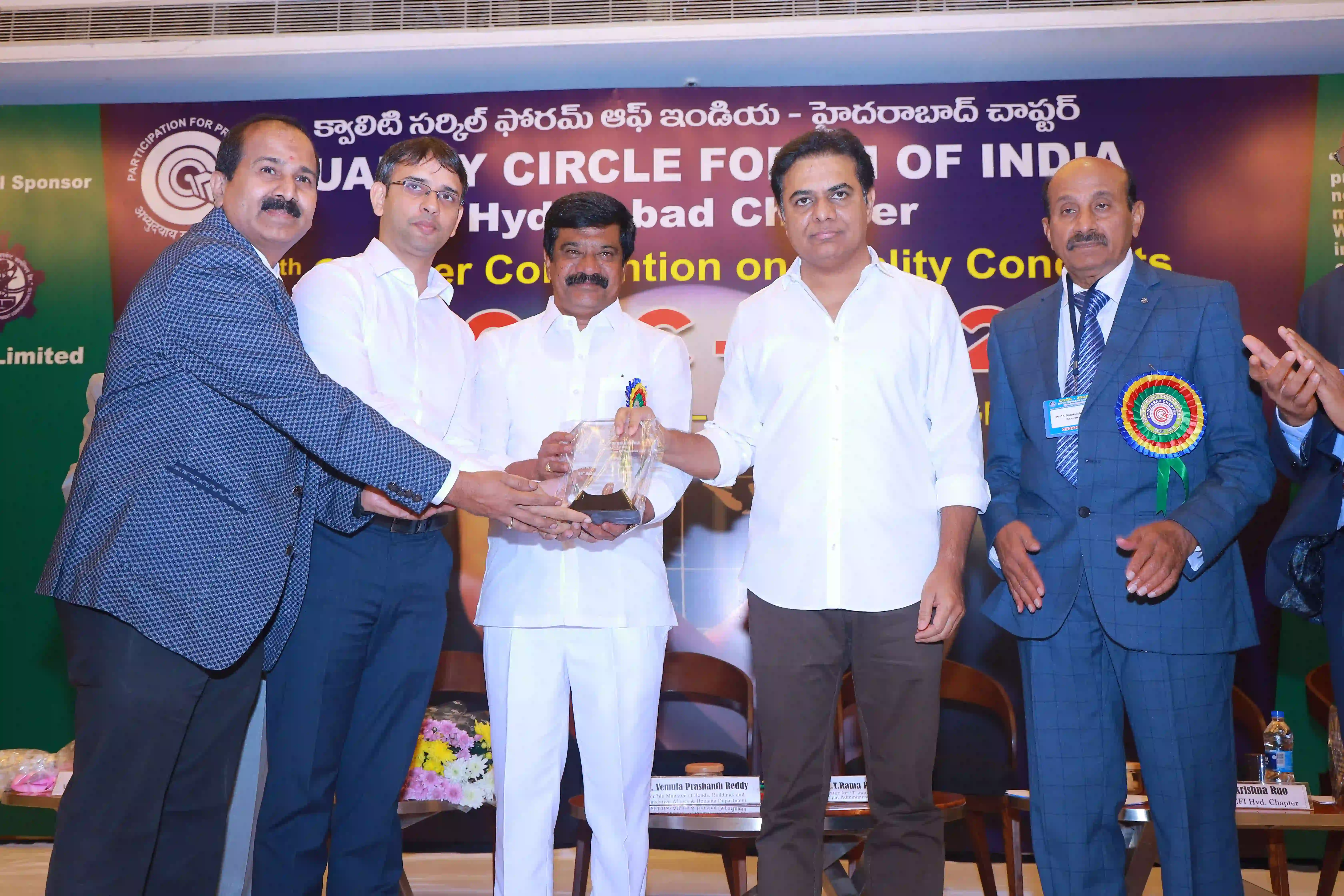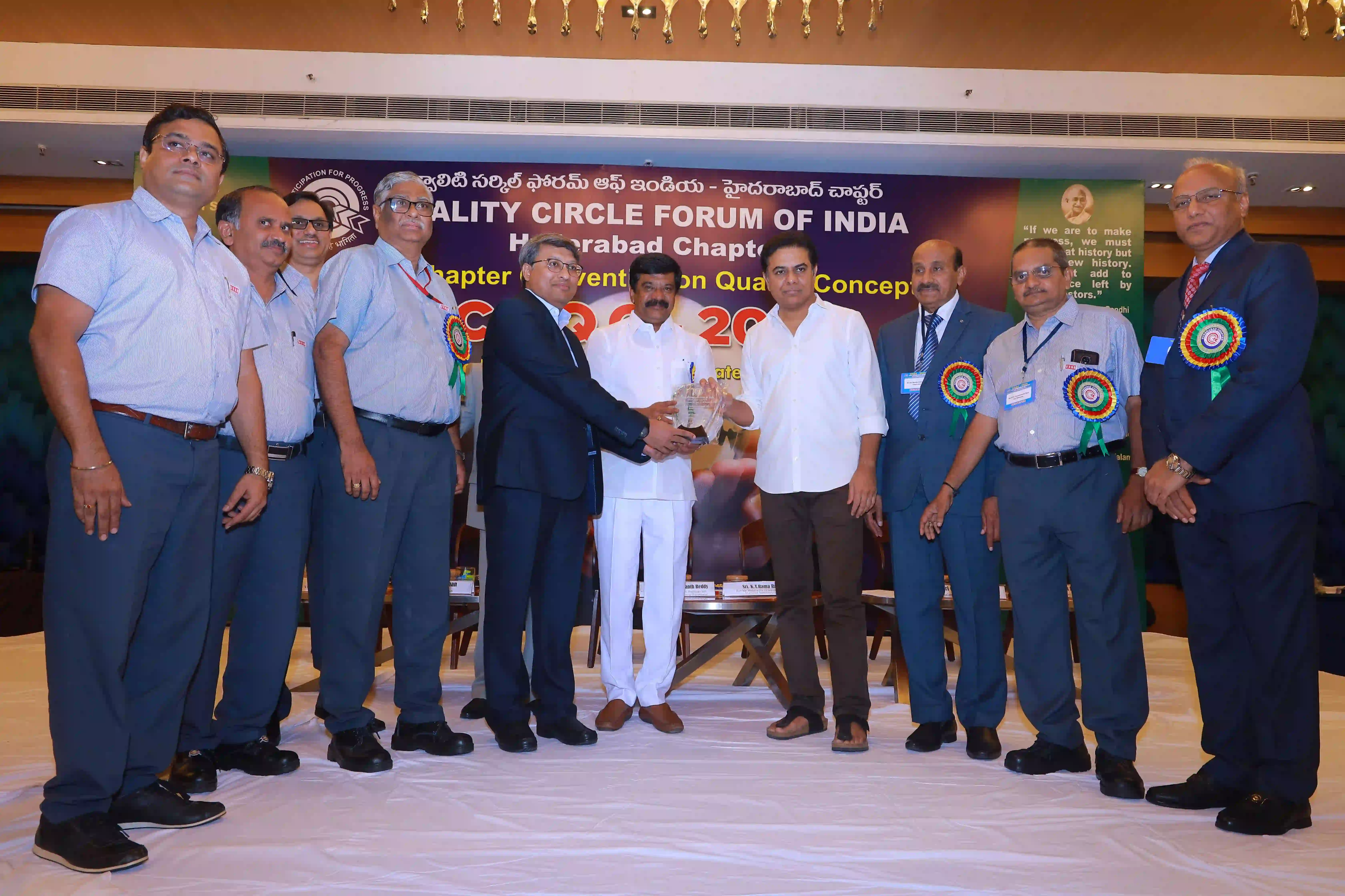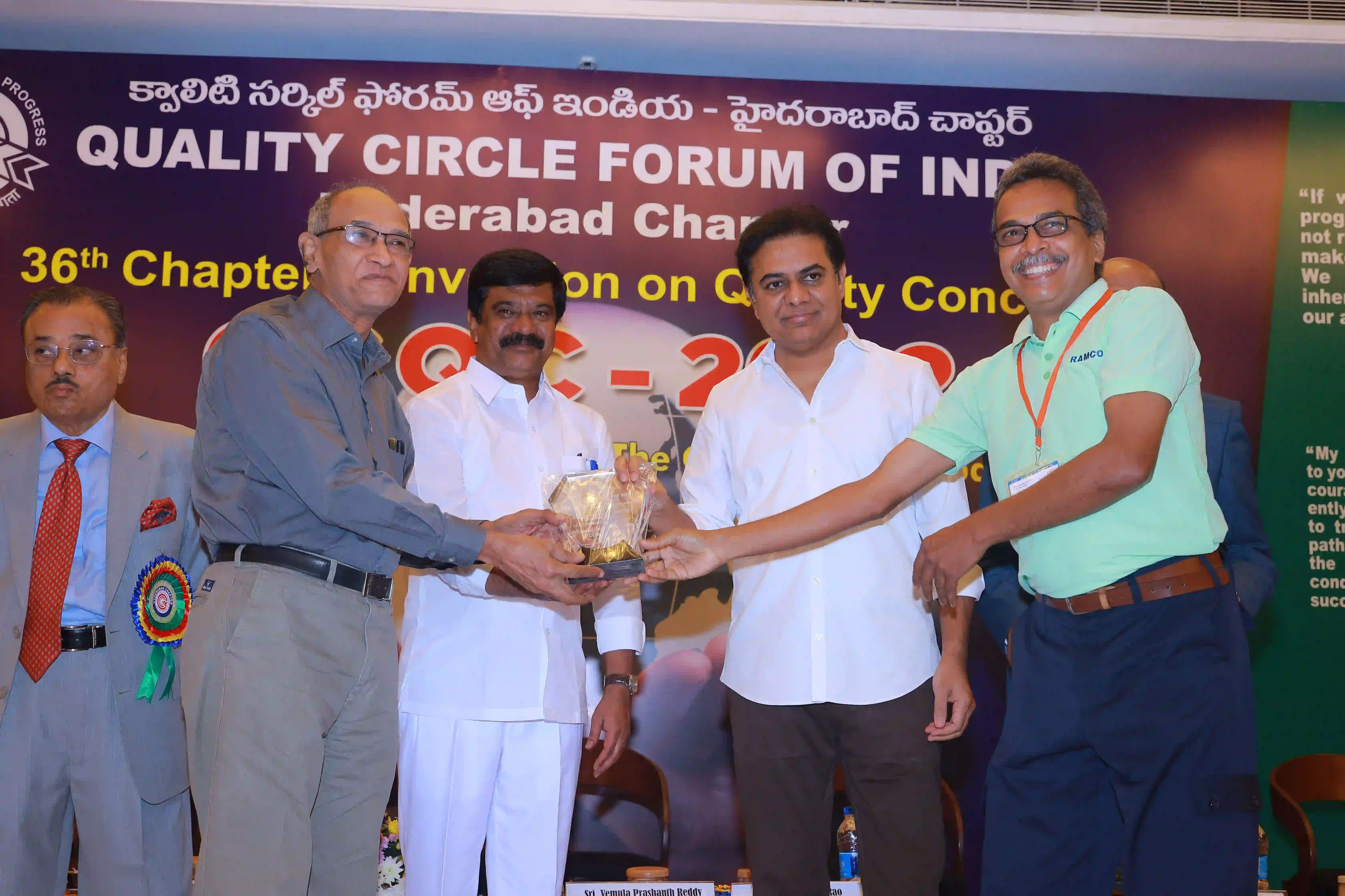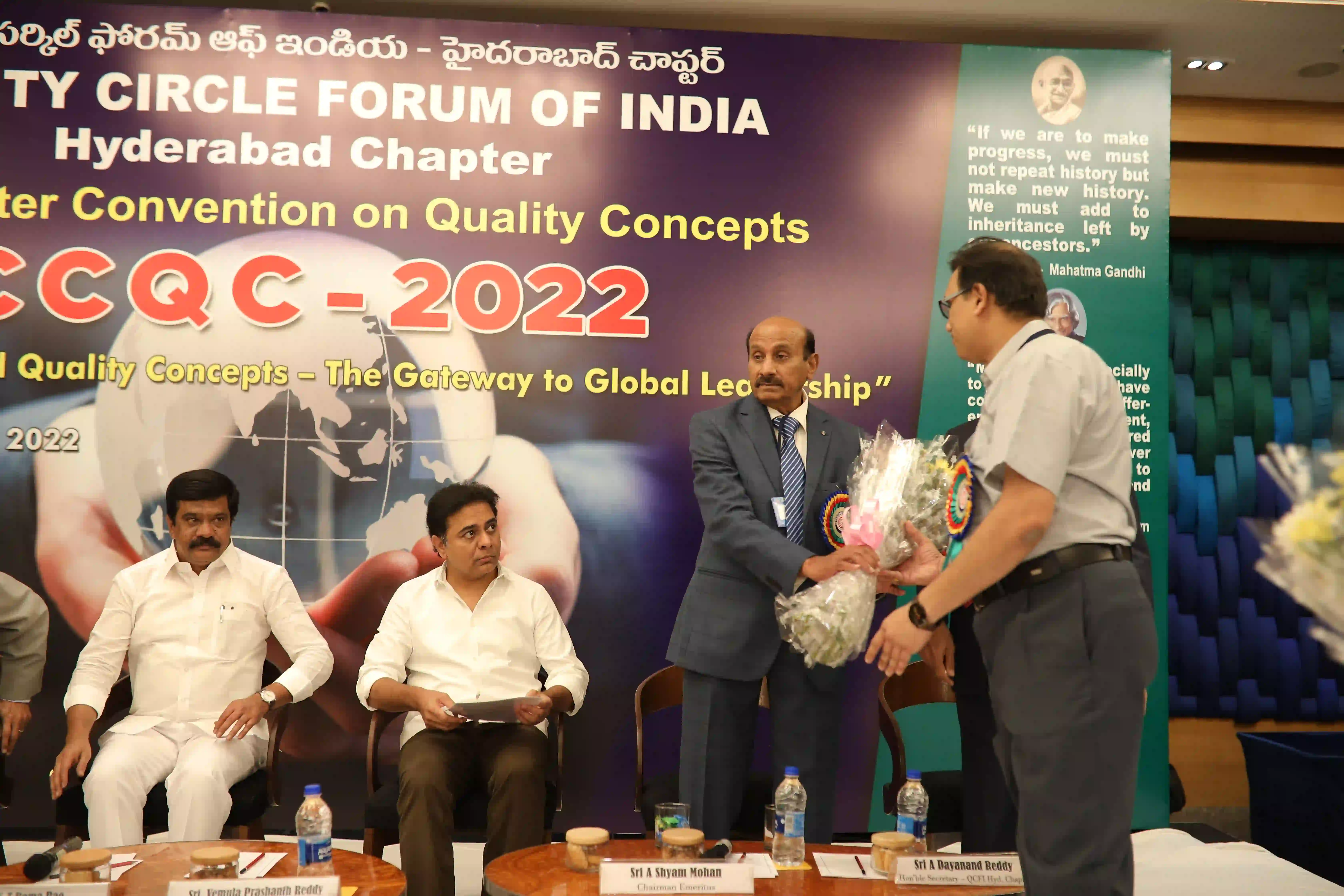 26th Hyderabad chapter convention on QCs was conducted on 12th Expotel, Hyderabad. 93 QC teams participated in the convention with a 600 QC team members. The teams have presented their continuous improvement projects from various aspects of manufacturing and maintenance wings leading to productivity enhancement and quality improvements of organizations.The convention was inaugurated by Hon’ble Union minister for Surface Transport & Highways Sri Sarvey Satyanarayana, who has stressed on the topic of human resource development for achieving better results in the organizations and gave examples from his personal life. Later, Sri Neerabh Kumar Prasad, Commissioner, HMDA outlined on the quality of deliveries to citizens on various services. Participants have found exihilarated experiences from the convention and were happy on aspects of self and mutual learnings.