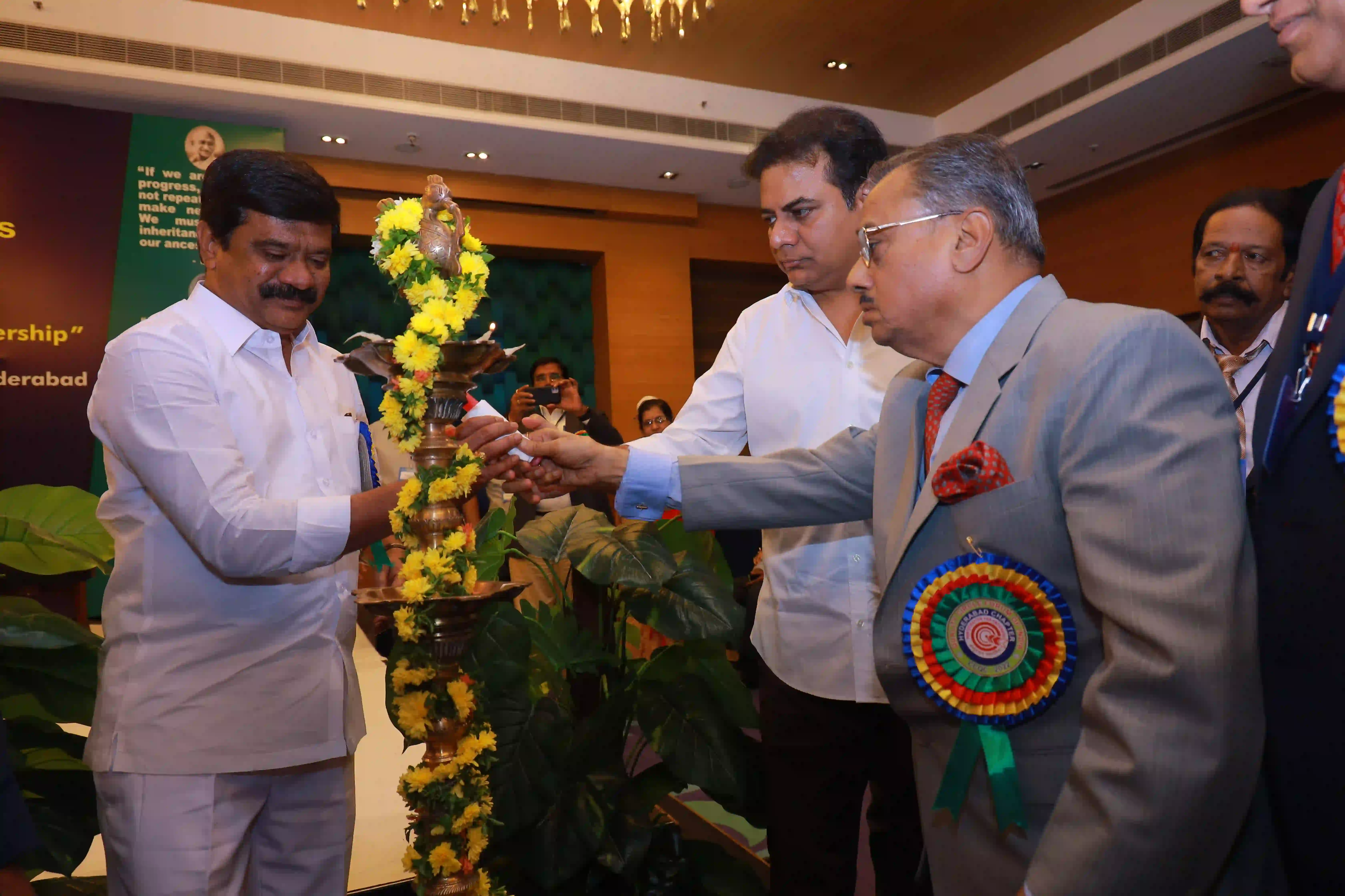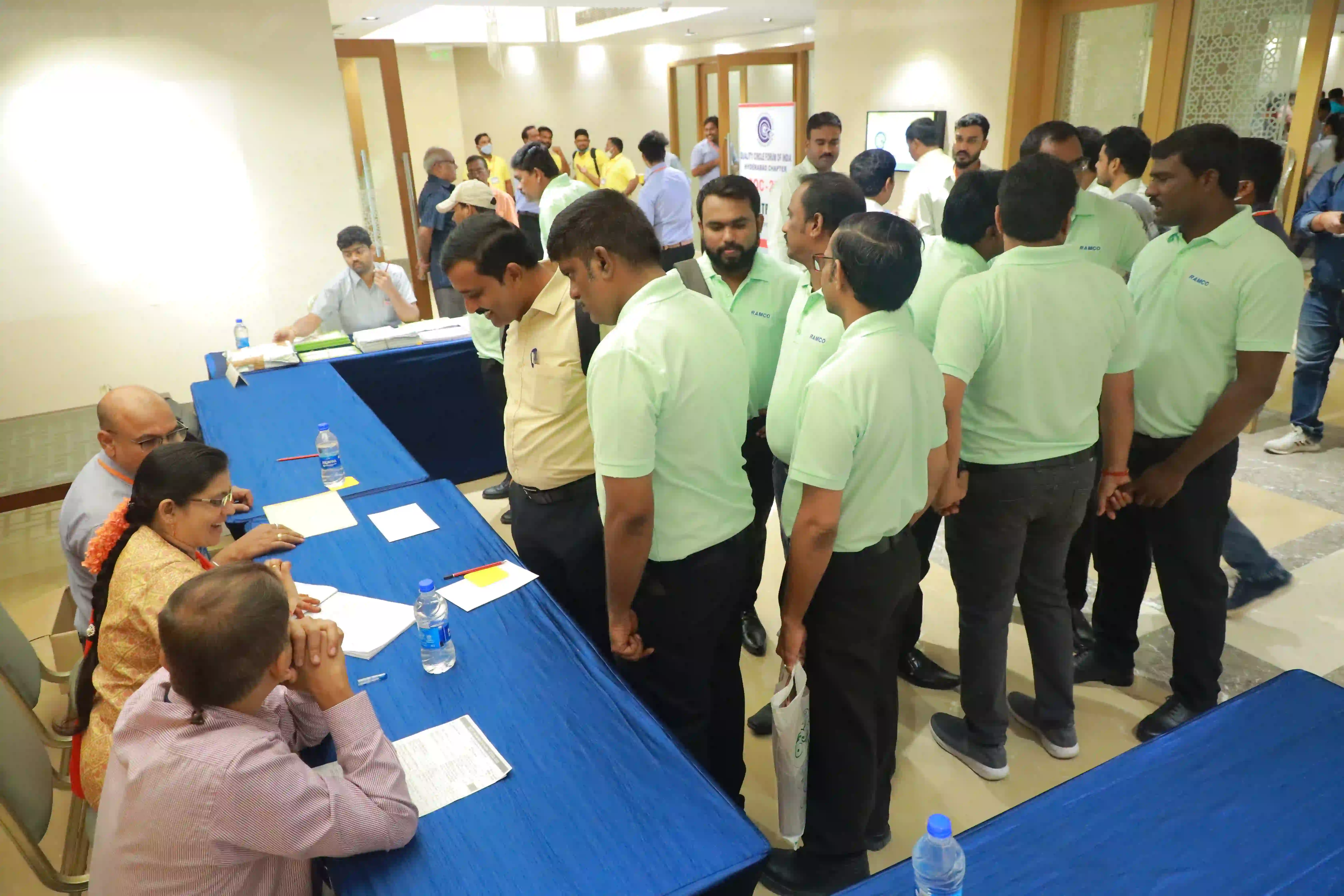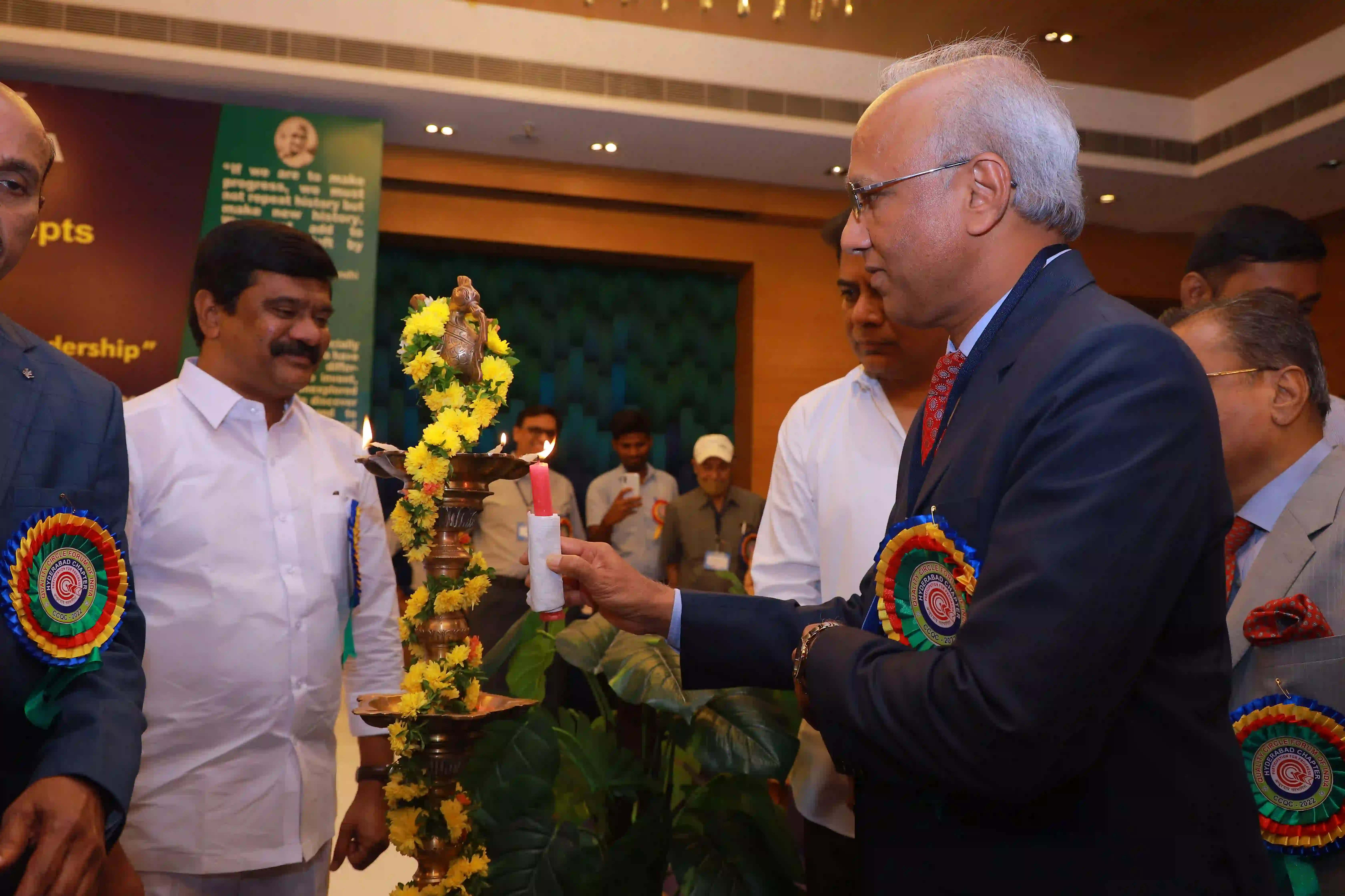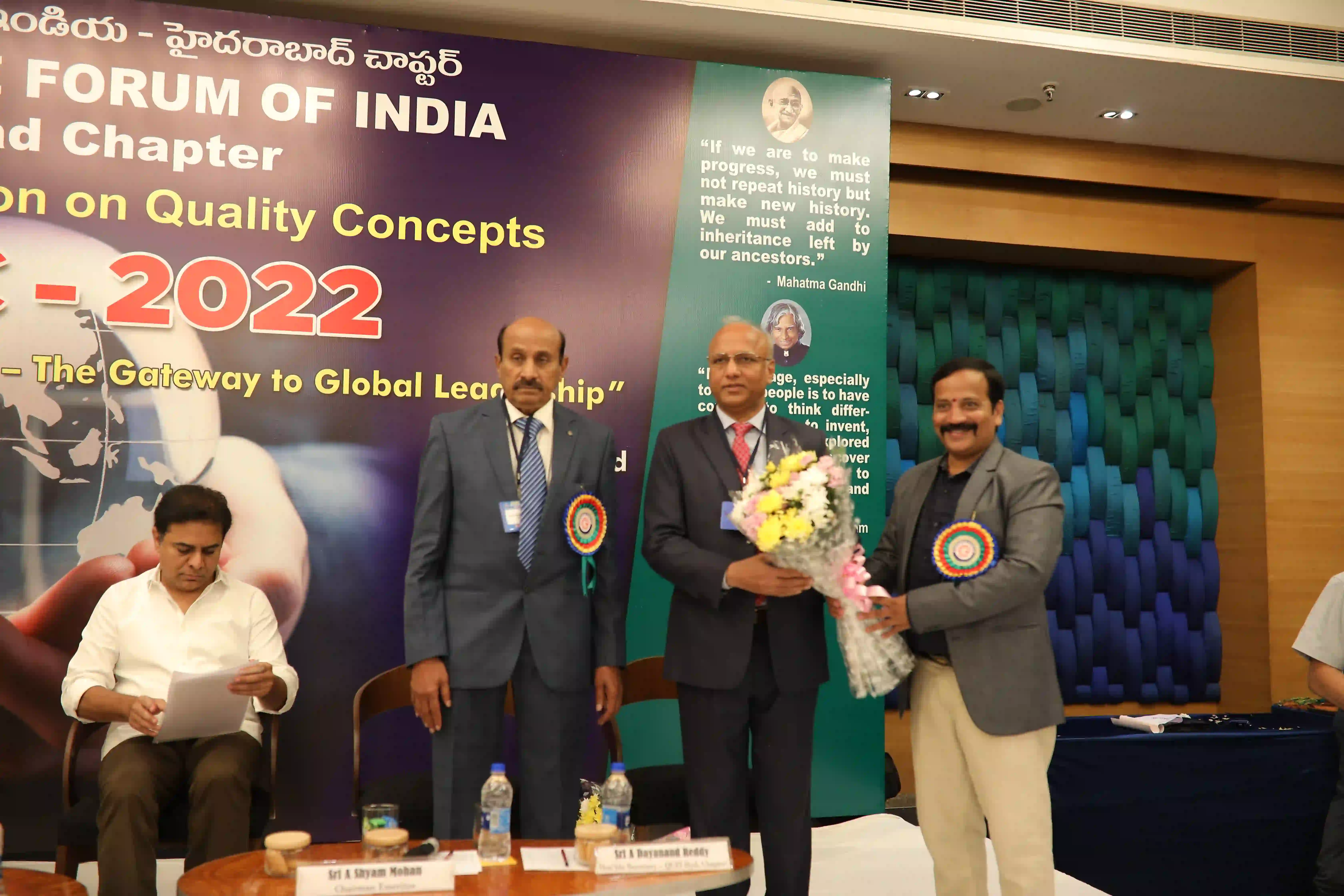 26th Hyderabad chapter convention on QCs was conducted on 12th Expotel, Hyderabad. 93 QC teams participated in the convention with a 600 QC team members. The teams have presented their continuous improvement projects from various aspects of manufacturing and maintenance wings leading to productivity enhancement and quality improvements of organizations.The convention was inaugurated by Hon’ble Union minister for Surface Transport & Highways Sri Sarvey Satyanarayana, who has stressed on the topic of human resource development for achieving better results in the organizations and gave examples from his personal life. Later, Sri Neerabh Kumar Prasad, Commissioner, HMDA outlined on the quality of deliveries to citizens on various services. Participants have found exihilarated experiences from the convention and were happy on aspects of self and mutual learnings.